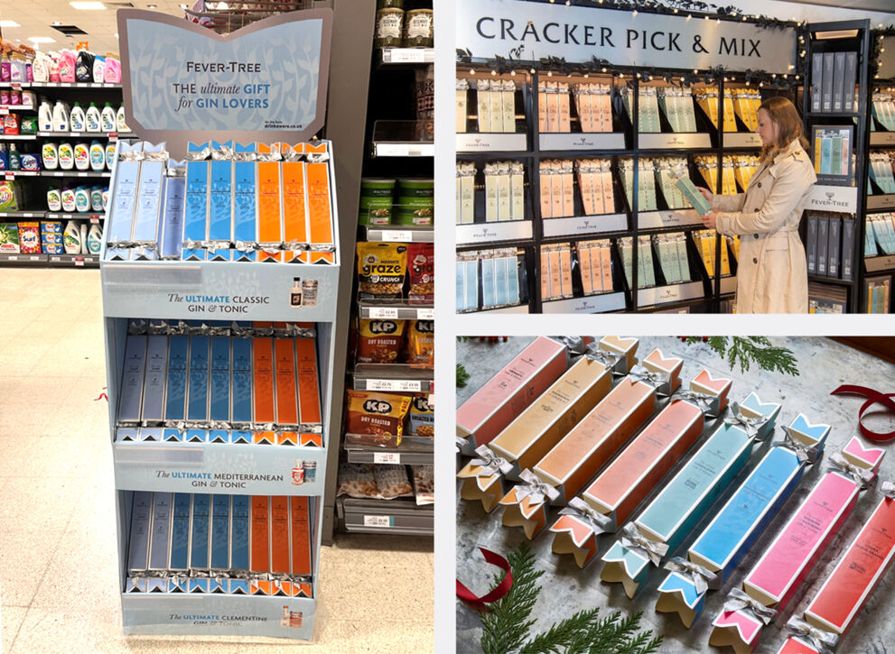 - Fever tree creatively put together an FSDU and packaging to fit the theme of a premium Christmas cracker.