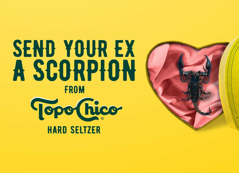 - Topo Chico Hard Seltzer, the sparkling alcoholic drink brand, wanted to differentiate itself by inspiring consumers to gift previous lovers an edible real Scorpion, dipped in a Strawberry and Guava Hard Seltzer flavoured coating
