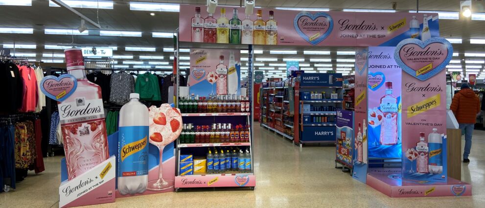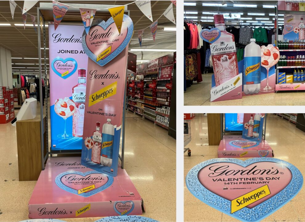 - Gordon’s partnered up with Schweppes ‘Joined at the sip’ for the ultimate Valentine’s day drink combo, by creating a large and impactful in-store display showcasing both brands