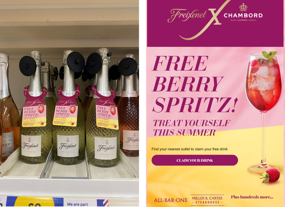 - Freixenet invited consumers to scan the QR code on a promotional neck tag, access the site, enter details, enable location or submit your postcode and receive a voucher code by email for a venue near them to get a free Freixenet Berry Spritz.