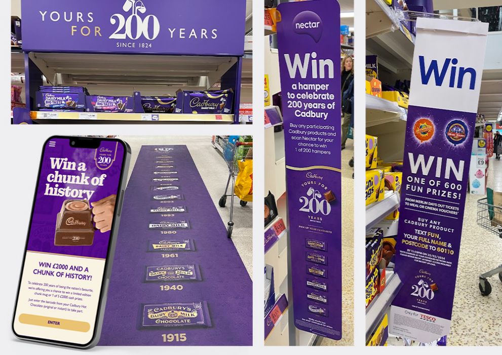 "Cadbury is celebrating 200 years in style. Aisle and bay takeovers capture consumer attention, while the nostalgic vintage packaging builds an emotional connection with consumer's memories of the brand. The raft of promotions across multiple retailers and channels make this a great example of a 360-shopper campaign to drive engagement." - F&BM View