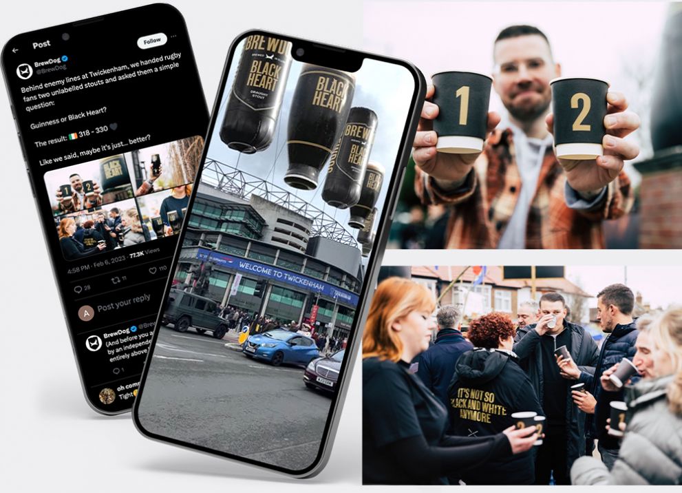 BrewDog's Black Heart stout, launched last year, continues to challenge Guinness' market share with their rebellious marketing ramping up for the Guinness-sponsored Six Nations.