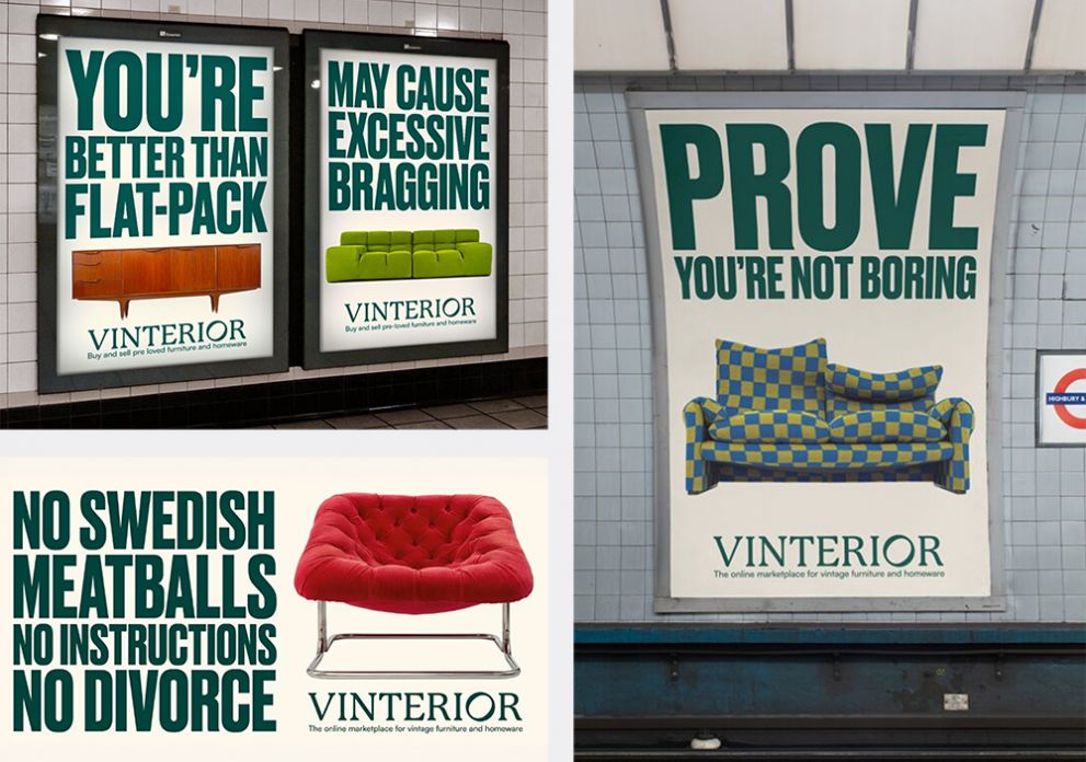 Vintage furniture marketplace Vinterior rolled out a playful OOH campaign across the London Underground. Incorporating a bold and confrontational tone towards the flatpack furniture behemoth IKEA, the billboards even referenced the infamous Swedish meatballs.