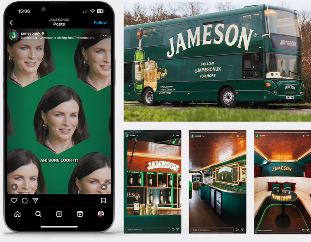 - The branded double-decker bus, featuring a Jameson cocktail bar, was promoted by brand ambassador Aisling Bea.