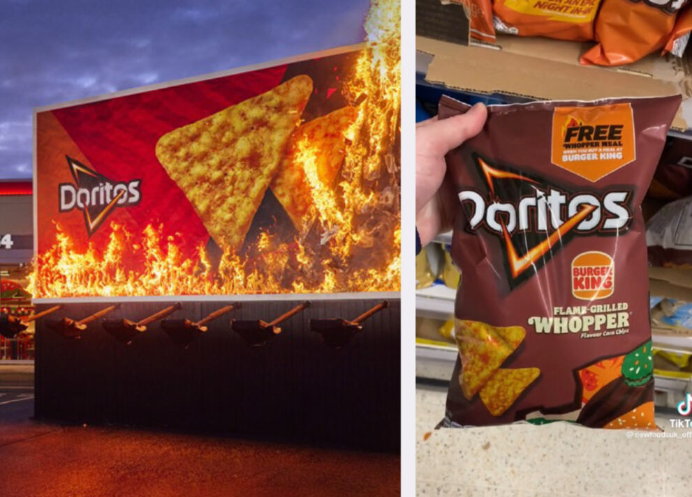 - Burger King and Doritos collaborated to launch the release of a new Doritos flavour, the ‘Flame-grilled whopper’ which was supported by an attention-grabbing stunt