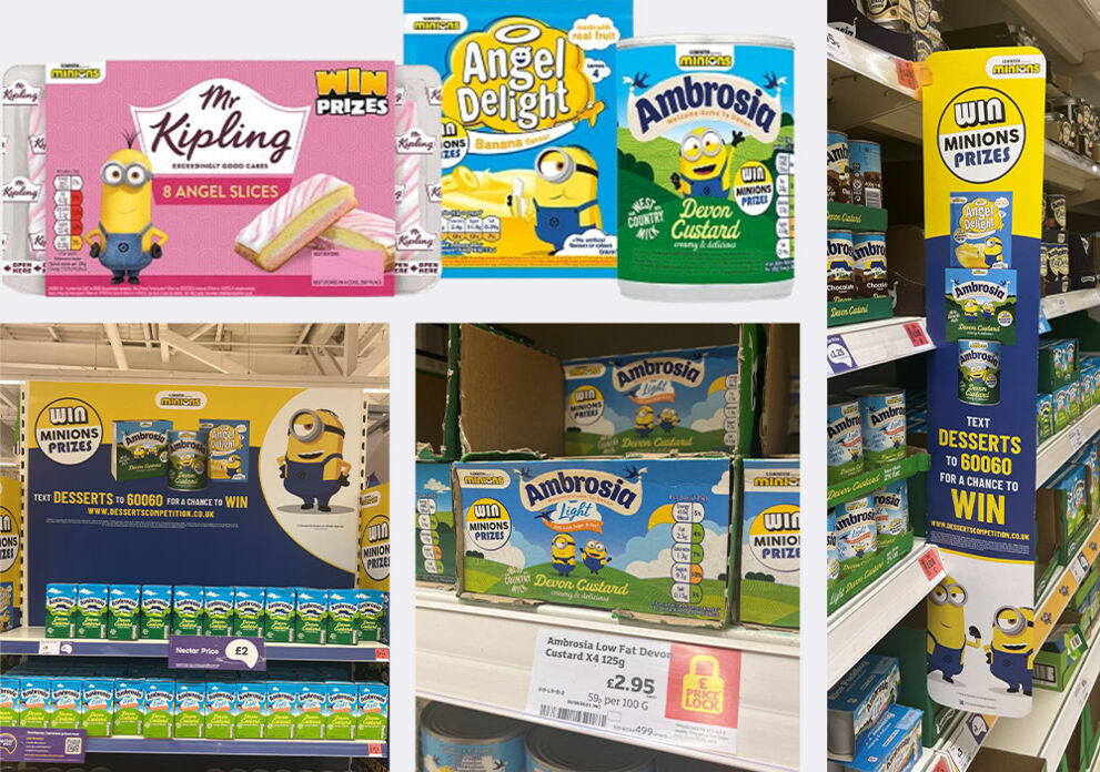 As part of a wider Premier Foods collaboration, Ambrosia is running a minion takeover on pack, alongside a text to win promotion.