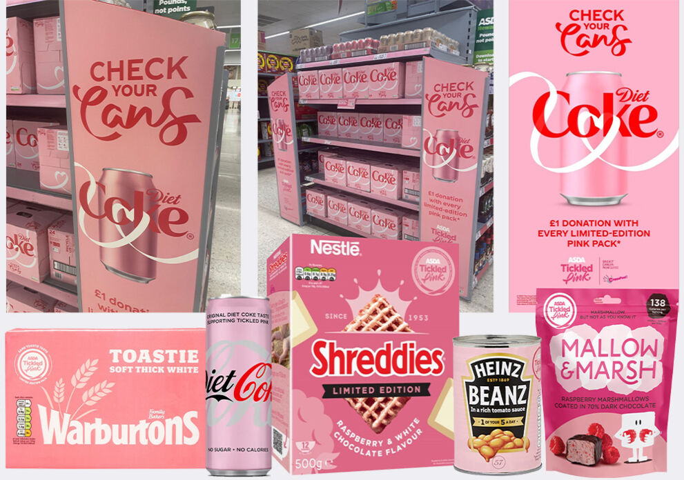 Part of ASDAs wider ‘Tickled Pink’ campaign to raise awareness of breast cancer, Diet Coke has launched a limited-edition pink can.