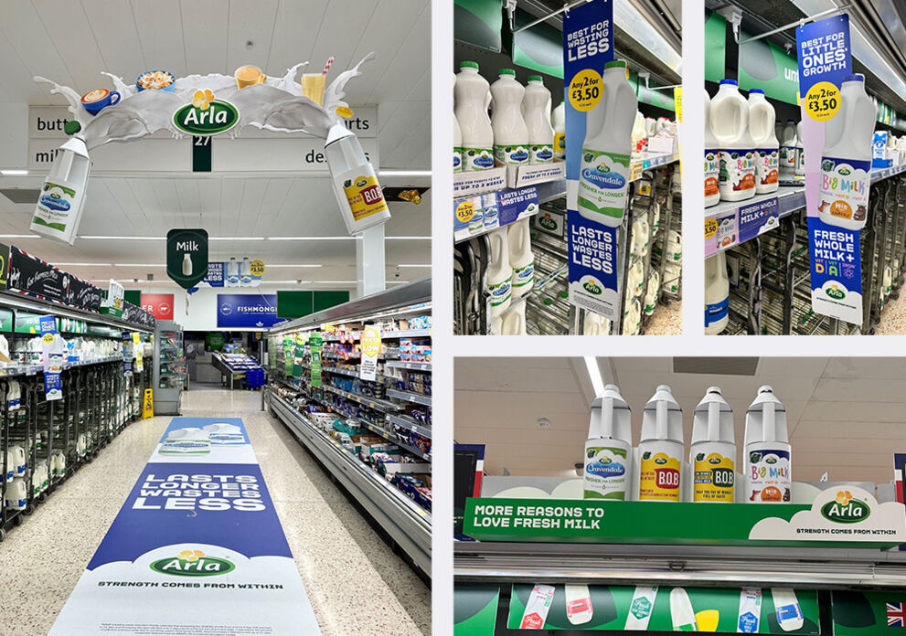 Arla are hosting a milk aisle takeover with a multi-faceted display activation focused on education around cows milk consumption.