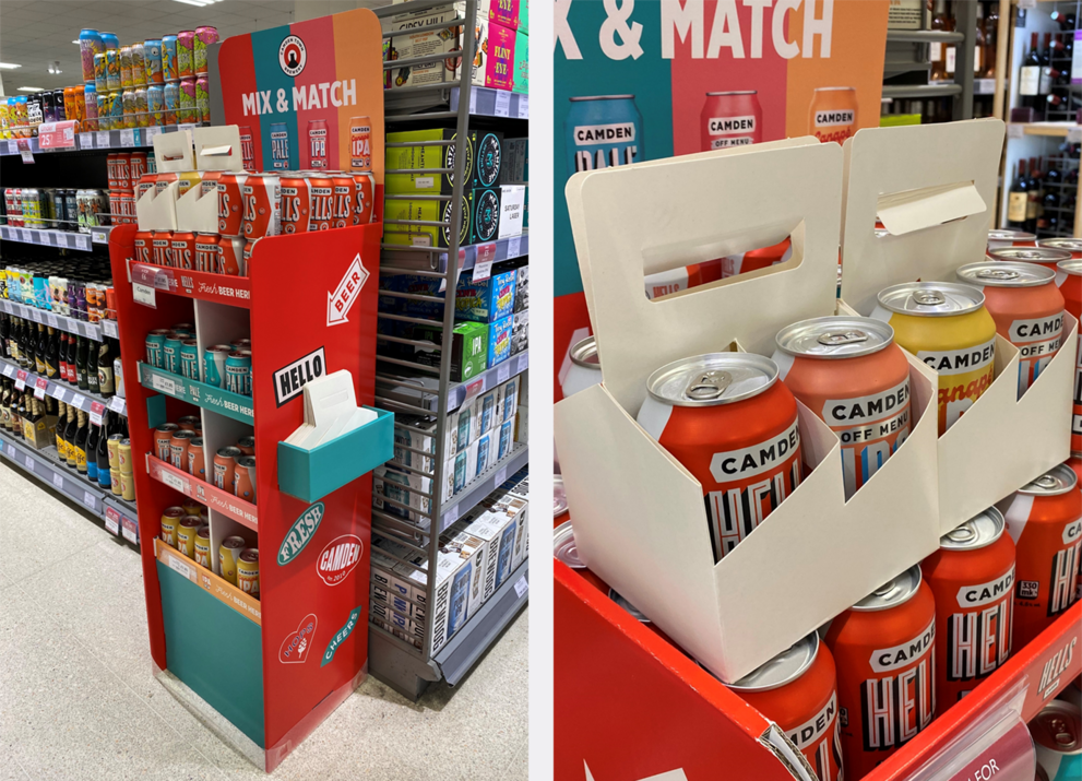 - An eye-catching, colourful FSDU with a carrying device encouraged consumers to pick and choose their preference of flavours of beer.