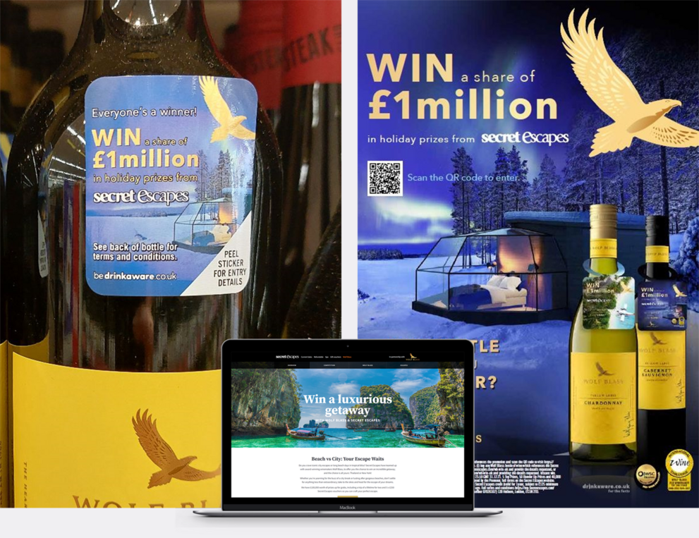 Wolf Bass partnered with Secret Escapes to offer consumers the chance to win a luxurious getaway. Prize destinations included a choice of New York City or Thailand for 2, as well as 5x £250 Secret Escape vouchers.
