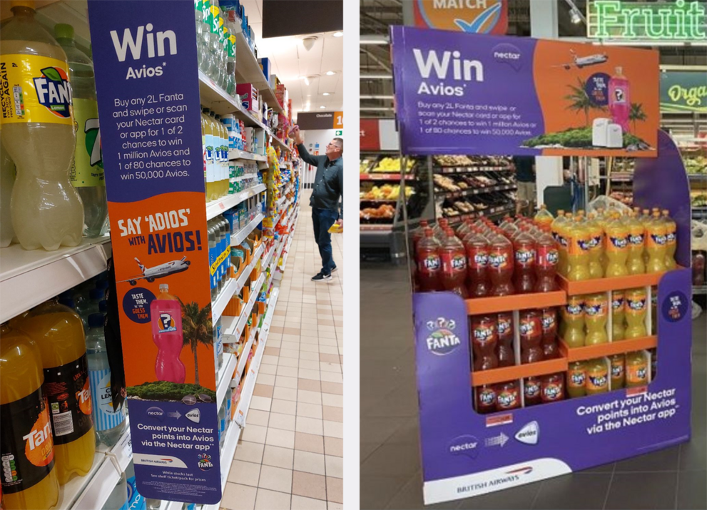 - In partnership with Nectar and Avios [British Airways], Fanta rewarded consumers of any 2L Fanta bottles, who swiped their nectar card at checkout, 100 points and entry into a prize draw.