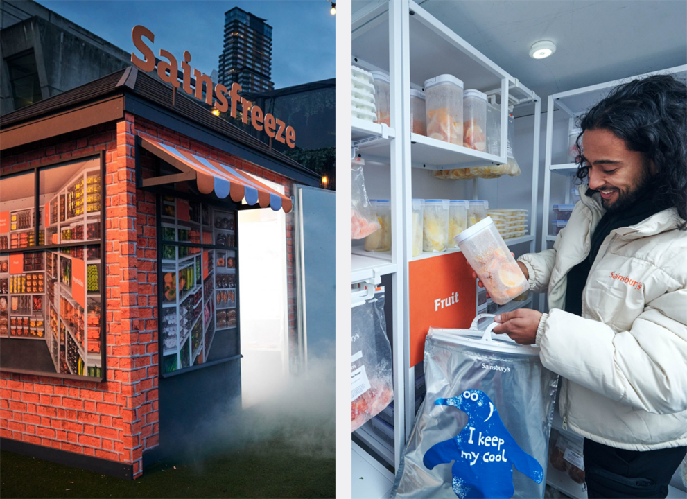 - A walk-in freezer installation was established, resembling a regular Sainsbury’s store, which was filled with frozen groceries, such as fruit and vegetables, dairy, meat, fish and baked goods, which customers would usually buy fresh.
